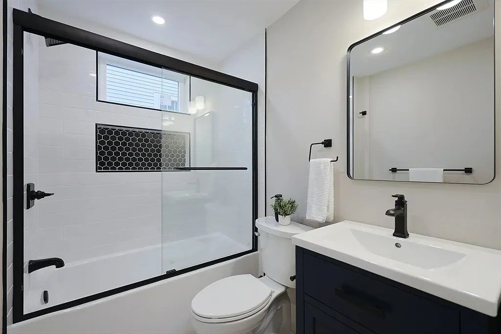 This renovation reimagines a traditional single-family home by introducing a full second-floor addition to expand the living area and modernize the overall aesthetic. The new level adds generous bedroom and bath space, transforming the home’s profile and bringing balance to its proportions. Inside, the design emphasizes clean lines, natural light, and a cohesive material palette that bridges old and new. Existing structural elements were retained where possible, while updated systems, finishes, and fixtures give the interior a contemporary feel suited to modern family living.
